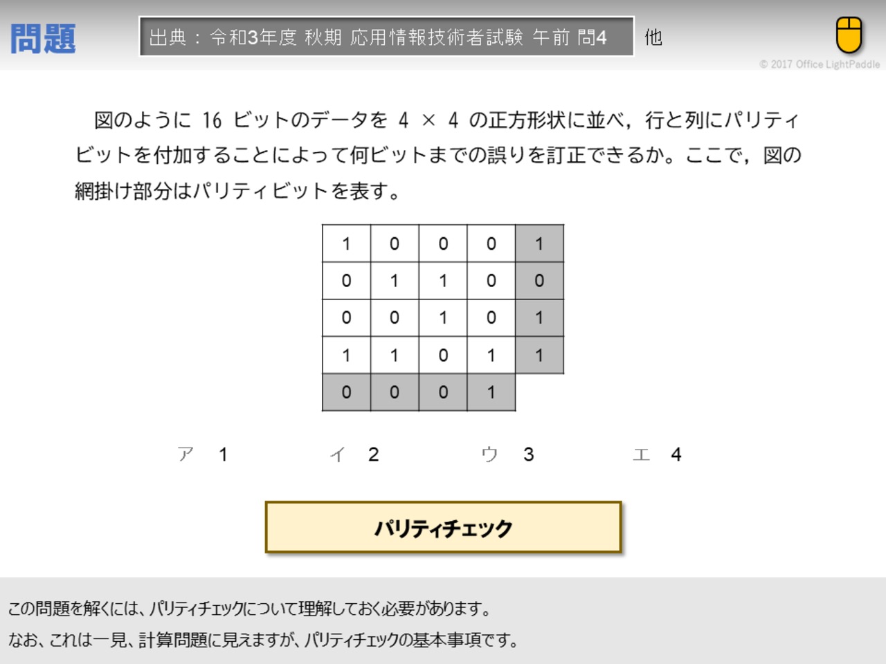 この商品は「パリティチェック」に関する計算問題を解説しています。