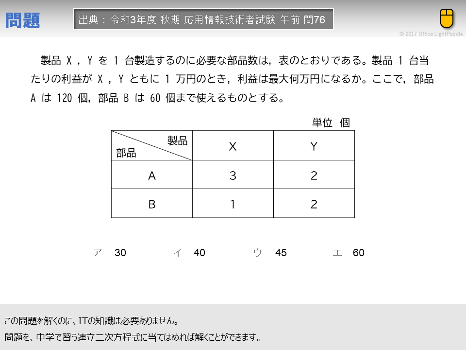 《ヒント》この問題を解くのに、ITの知識は必要ありません。